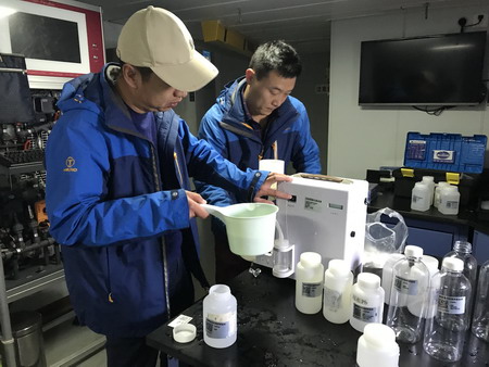 本航次历时3天,航行300多海里,共搭载18人(13名船员、5名科考队员),在烟台近岸海域共采集了19个站位的水文、气象等样品和数据,圆满的完成了预定监测作业任务。